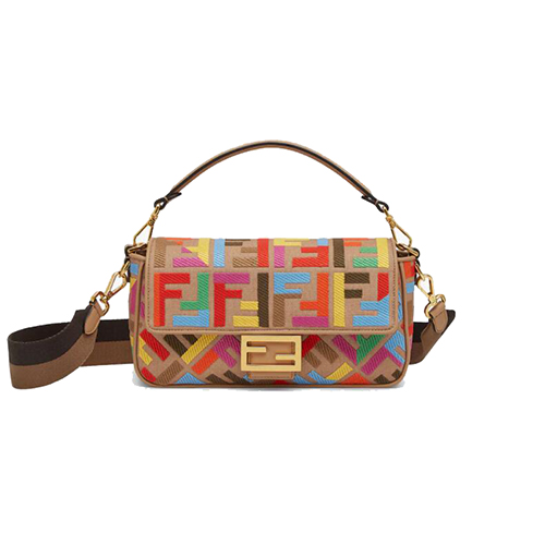 아이 코닉 미디엄 바게트 백, 베이지 컬러 캔버스