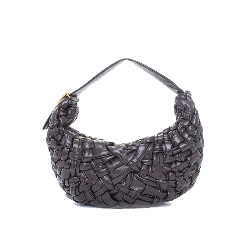 ▶수작업으로 위빙한 가죽 호보 백