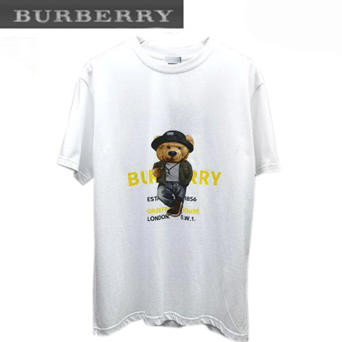 BURBER**-03225 버버리 화이트 프린트 장식 티셔츠 남성용